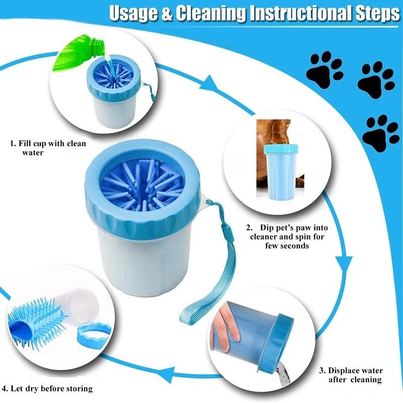 The simple design of Mud-e-Mutt Paw Cleaner makes clean up super easy. Fill the cup with water and pet shampoo (optional), insert one paw at a time and rotate the cup gently at the same time so the silicone bristles gently interact with your pet’s paw. Towel off to complete the cleaning experience.