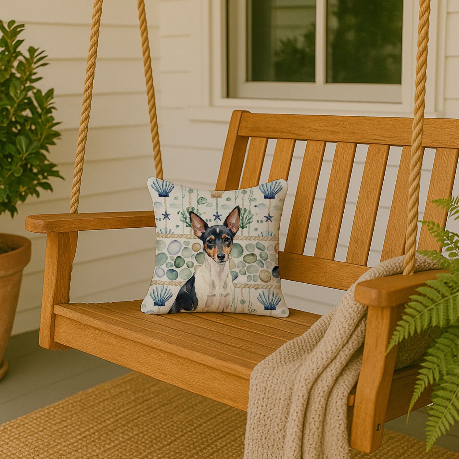 Toy Fox Terrier Coastal Sea Glass Throw Pillow Decorative Indoor Outdoor Accent Cushion for Couch, Bed or Patio, 14Hx14W
