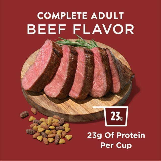 Delicious dry dog kibble with a beef flavor that dogs love.